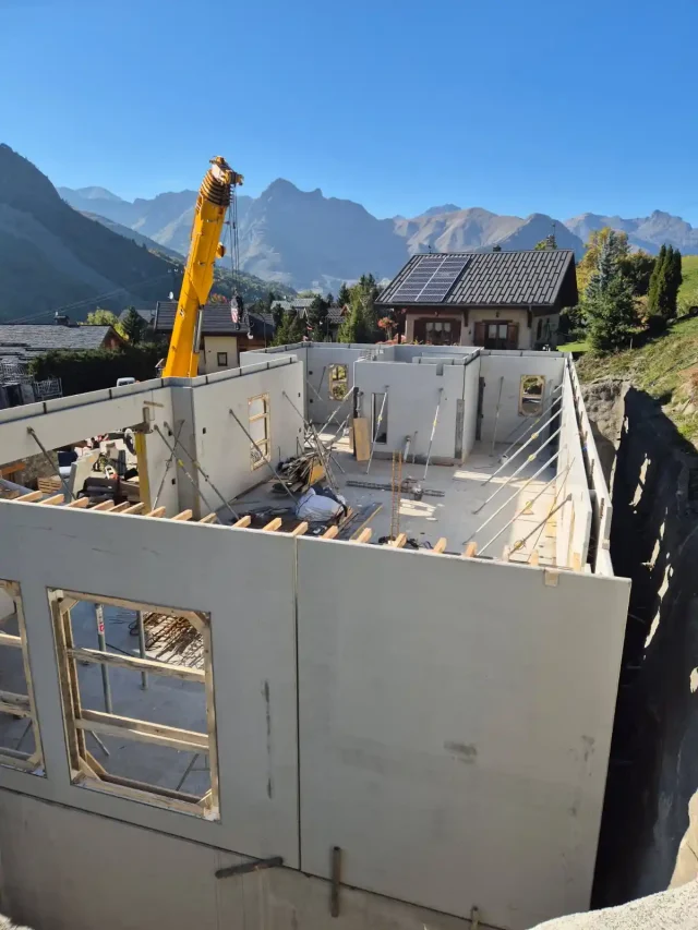 Chalet à Saint-Martin de Belleville admin2026-01-14T10:59:09+00:00 0 14 janvier 2026 More Information Construction d’un chalet en béton dans les Alpes. Création de 700m² de plancher sur 4 niveaux. Elévations en prémurs. Share LinkedIn